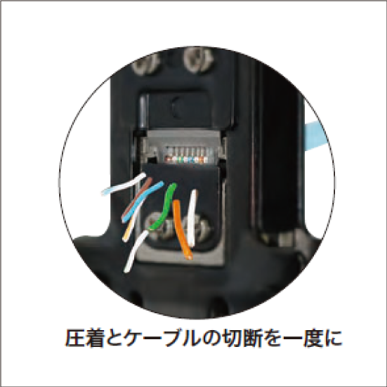 ● 1回の動作で圧着とケーブルの切断が同時にできる