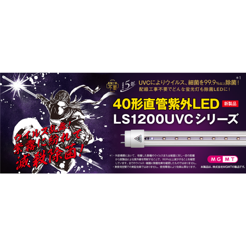 40形直管紫外LED 工事不要 LS1200UVC-275-U2