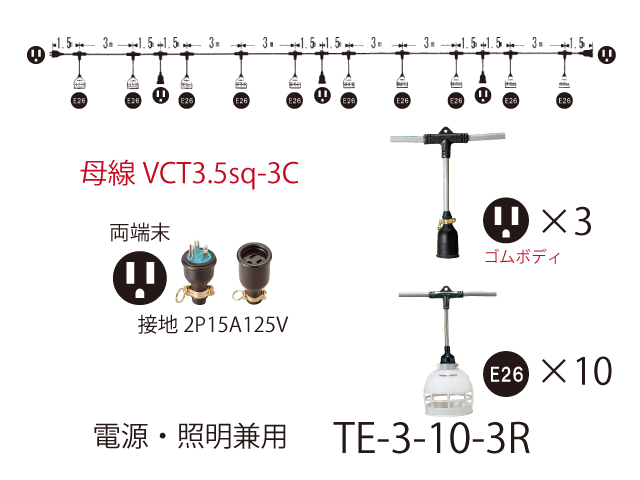 E26口金の電球、LED電球を取付でき、電源も取り出すことができます。