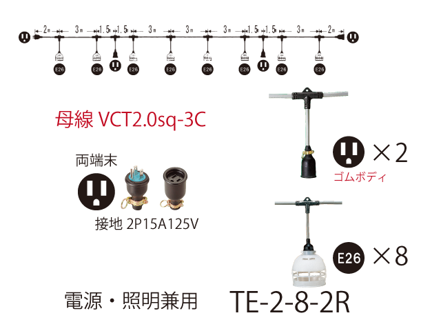 E26口金の電球、LED電球を取付でき、電源も取り出すことができます。