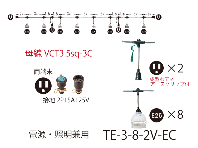 - 電源・照明兼用 TE-3-8-2V-EC