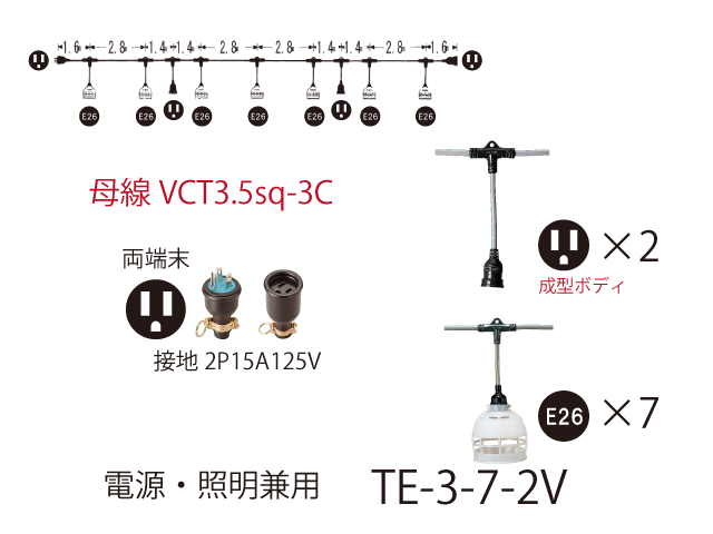 E26口金の電球、LED電球を取付でき、電源も取り出すことができます。
