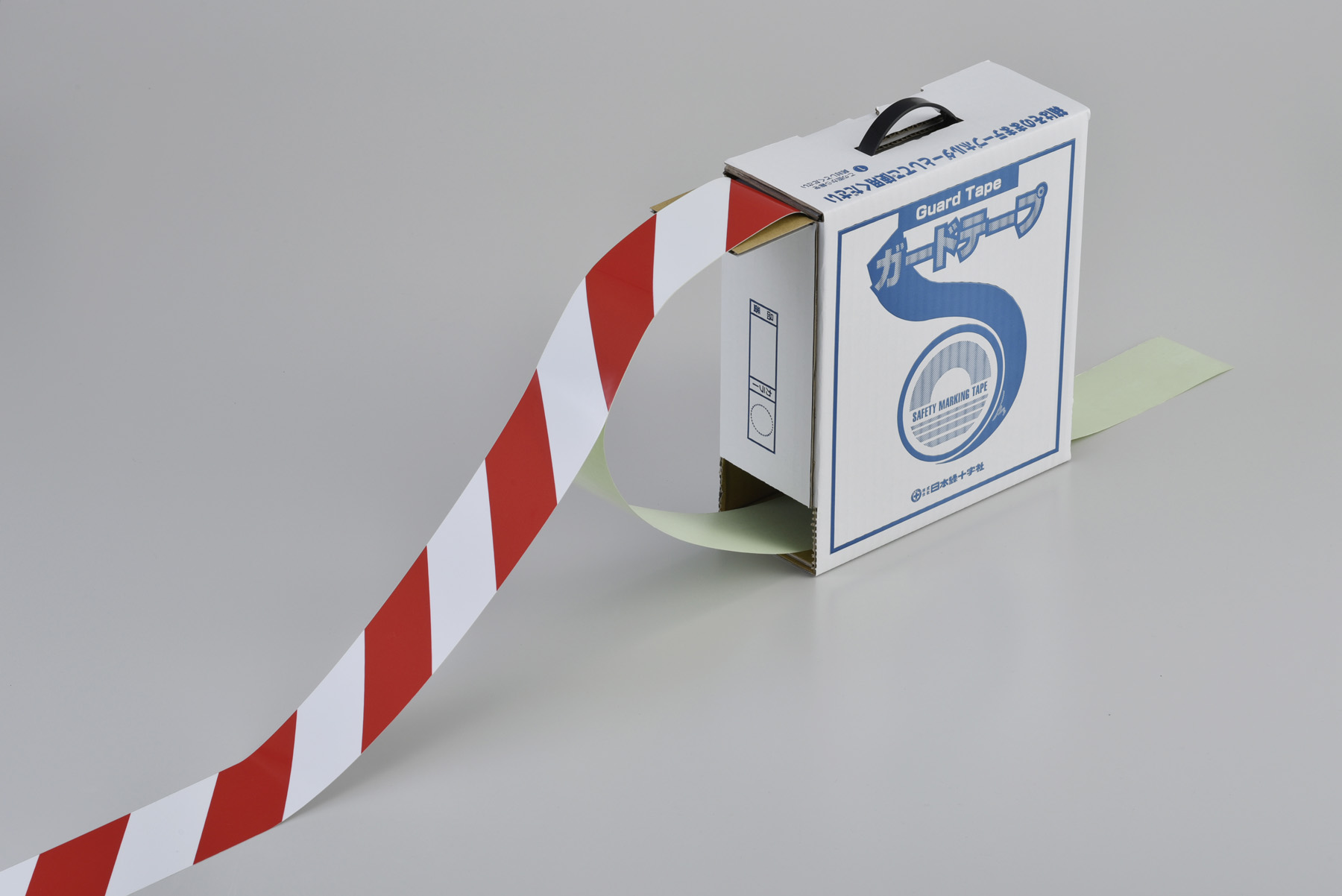 サイズ 75mm幅×100m 厚み 0.2mm 材質 オレフィン樹脂(表面ポリエステル加工) カラー 白/赤 ※100m巻は箱入り