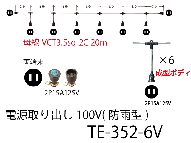 | TE-352-6V | 30 | 3.5sq-2C | 0.25 | 1.25sq-2C | 6 | 0 | ゴム防水2P15A | |