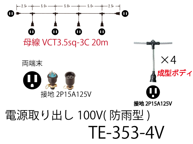 | TE-353-4V | 20 | 3.5sq-3C | 0.25 | 2.0sq-3C | 4 | 0 | ゴム防水接地2P15A | |