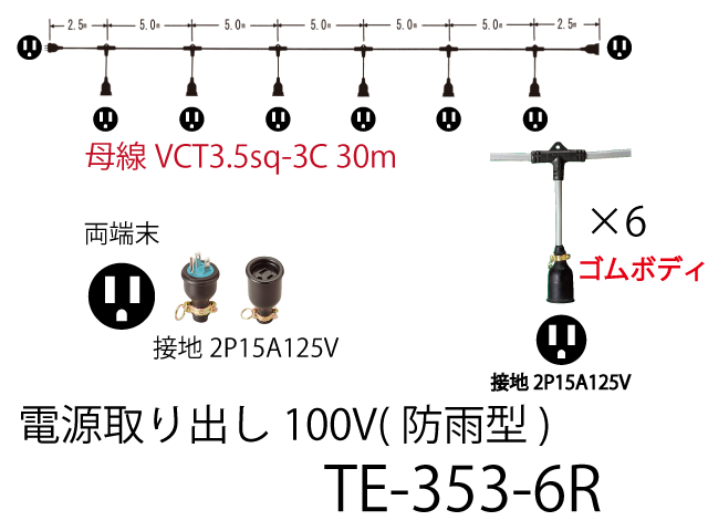 | TE-353-6R | 30 | 3.5sq-3C | 0.25 | 2.0sq-3C | 6 | 0 | ゴム防水接地2P15A | |