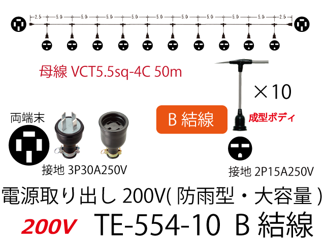 - 電源取り出し200V大容量 TE-554-10 B結線