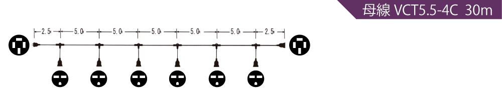 間隔、長さ、電線太さ、電源取り出し数等、使用状況に合わせて作成することが可能です。