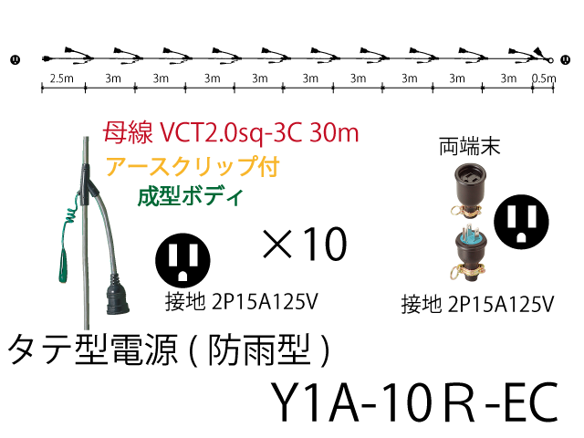 | Y1A-10V-EC | 30 | 2.0sq-3C | 0.25 | 2.0sq-3C | 10 | 10 | 接地2P15A | ||