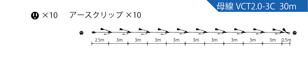 | 長さ(m) | 使用電線 | 長さ(m) | 使用電線 | (数) | 標準 プラグ 形状 |