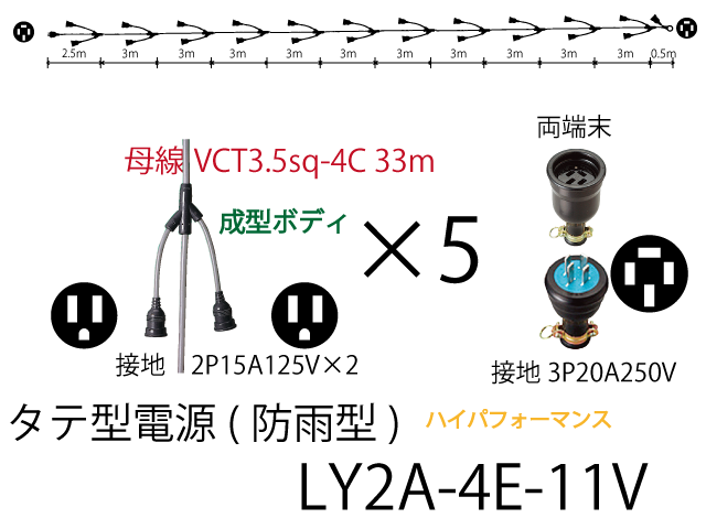 | Y2A-3E-11V | 33 | 3.5sq-3C | 0.25 | 2.0sq-3C | 22 | 接地2P15A | ||
