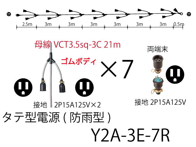 | Y2A-3E-7R | 21 | 3.5sq-3C | 0.25 | 2.0sq-3C | 14 | 接地2P15A | ||