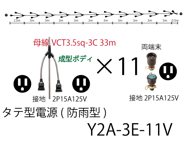 | Y2A-3E-11R | 33 | 3.5sq-3C | 0.25 | 2.0sq-3C | 22 | 接地2P15A | ||