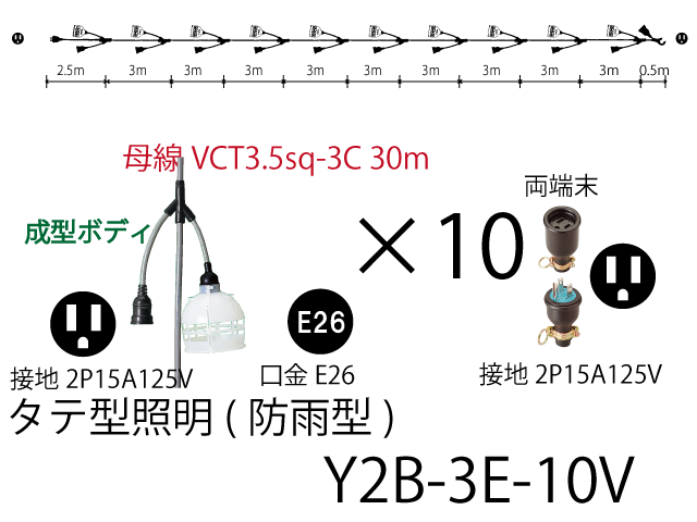| Y2B-3E-10V | 30 | 3.5sq-3C | 0.2 | 電源 2.0sq-3C 照明 1.25sq-2C |