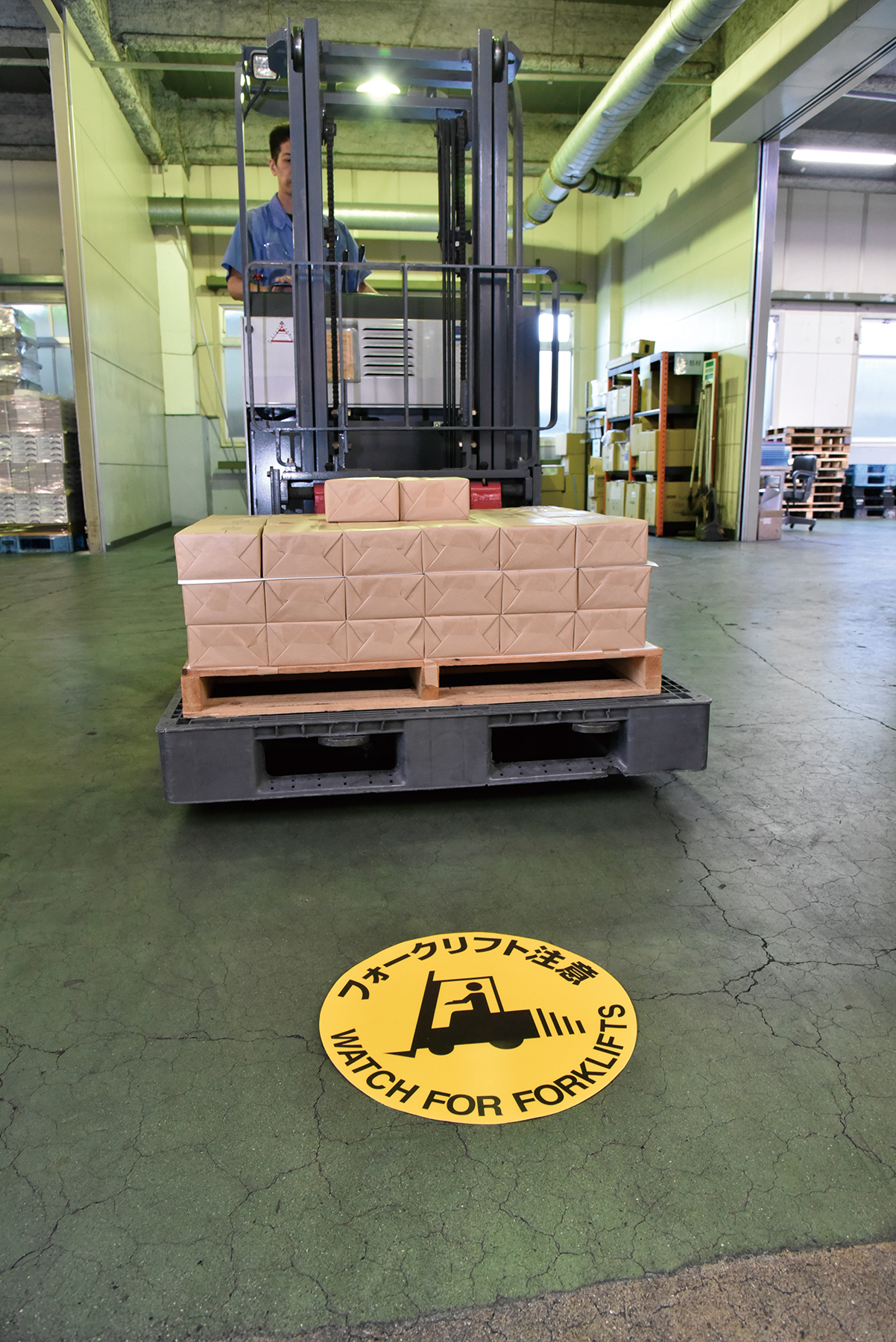 メーカー:日本緑十字社 サイズ 400mm丸×0.5mm 材質 基材:PVC 表面フィルム:PVC 仕様 ステッカータイプ ※コンクリート面に設置される場合は、プライマーのご使用をおすすめします。
