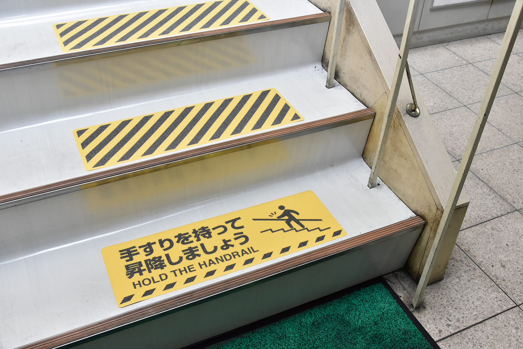 メーカー:日本緑十字社 日本語と英語の二カ国語表記で、もれなく注意喚起!サインと滑り止めが一体化