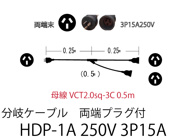 - 分岐ケーブル HDP-1A-250V-3P15A