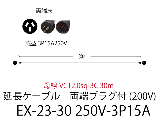 延長ケーブル EX-23-30-250V-3P15A