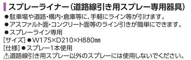 サイズ W175×D210×H880mm 仕様 スプレー1本使用 ※道路線引き用スプレー以外のスプレーに使用しないでください。