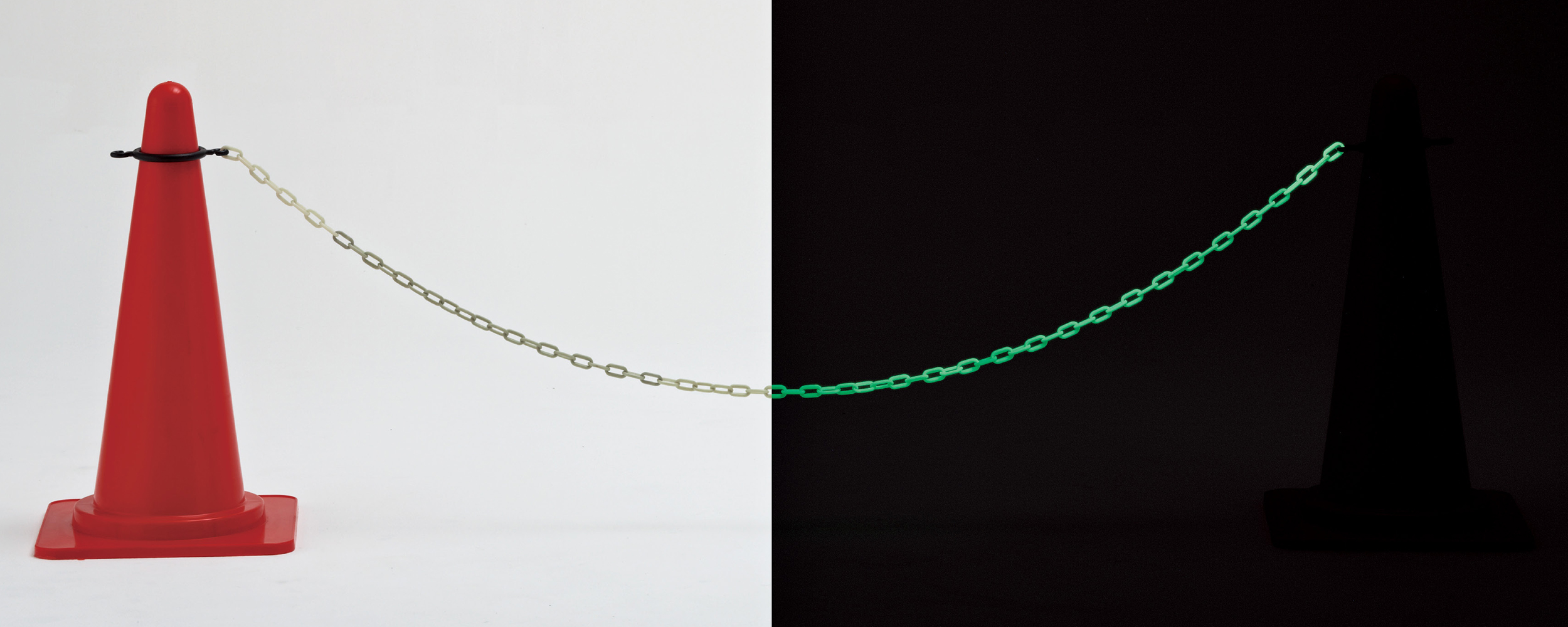 サイズ チェイン部:長さ約2m・線径6mmΦ リング部:110φ×90Φmm厚み12mm 材質 リング部:スチロール チェイン部:HDPE・蓄光材 仕様 リング2個 高輝度蓄光チェイン(20分後輝度103mcd/㎡)