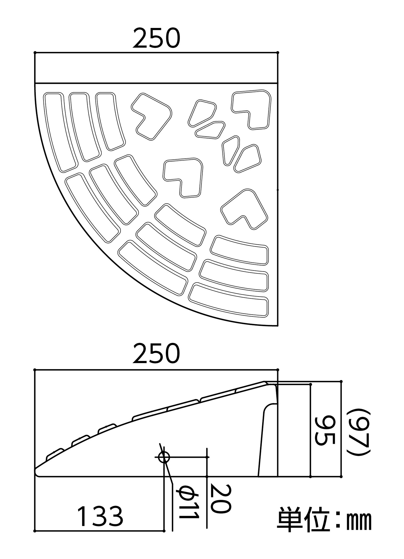 サイズ H95×W250×D250mm 質量 2.4kg 材質 再生ゴム カラー ブラック 仕様 連結チプ 付属品 ボルト・ナット×各1個、ワッシャー×2個