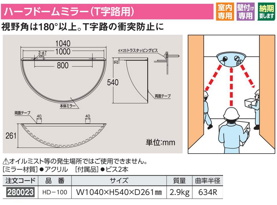 - ハーフドームミラー(十字路用) 280023 HD-100