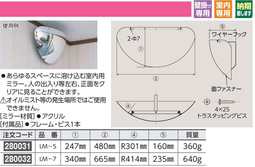- ミラー(天井用・壁周・L字路用・壁掛け用)