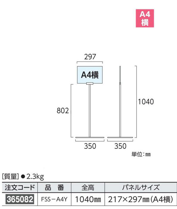 フロアスタンド A4横 365082 FSS-A4Y