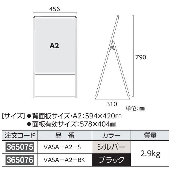 A型スタンド看板 A2 ブラック 365076 VASA-A2-BK