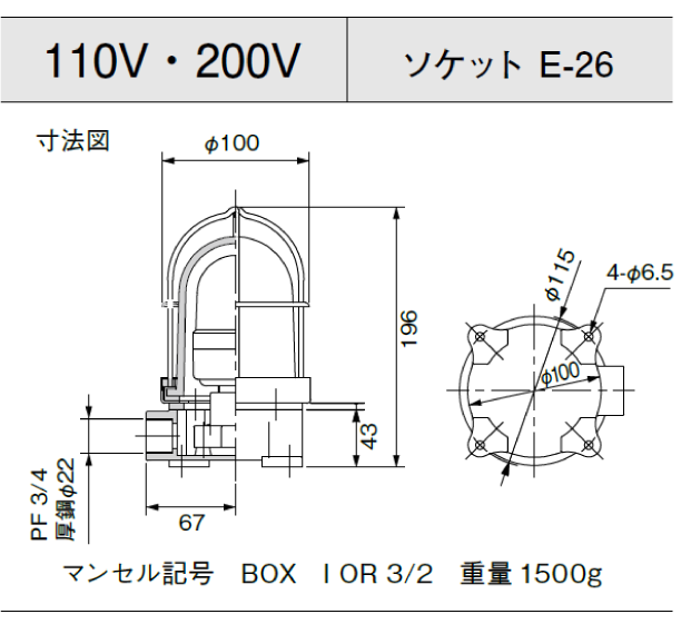改良型のソケットを使用しておりますので、振動によって電球が緩みにくい構造となっています。