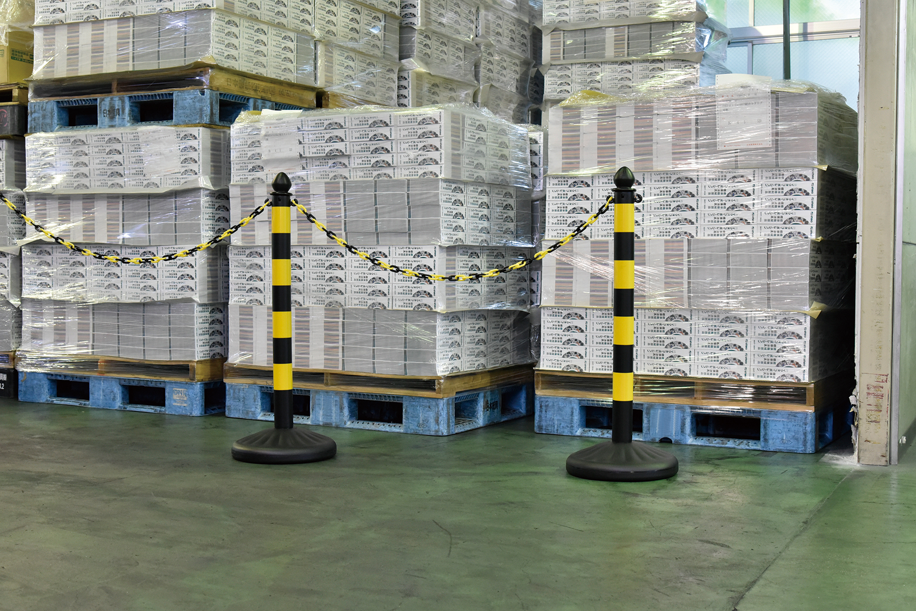 メーカー:日本緑十字社 サイズ 高さ:985mm ベース径:360mmΦ ポール径:65mmΦ 質量 1.2kg(満水時:約6.8kg) 材質 ポリエチレン ポールカラー 黄反射/黒 ベースカラー 黒 チェイン取り付け用フック付き 注水式ベース