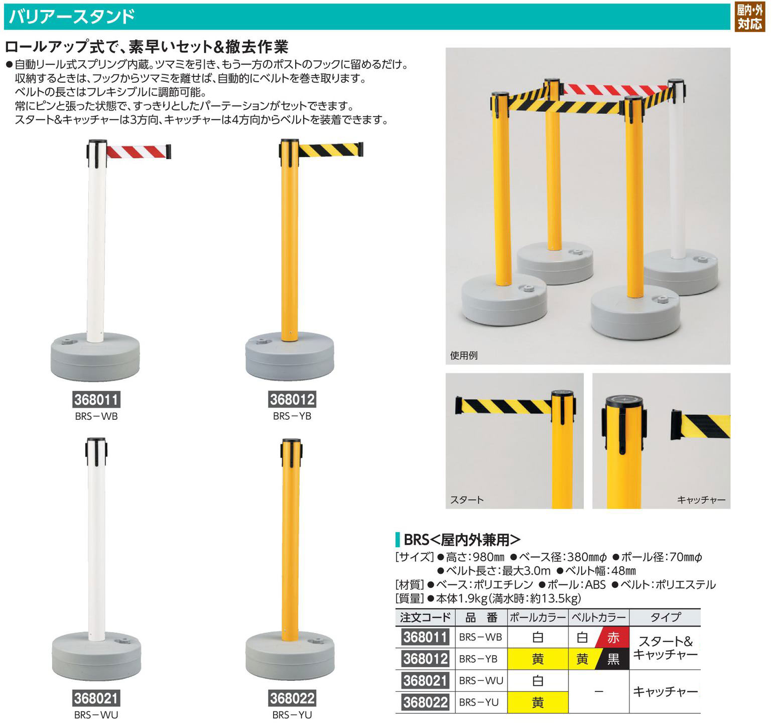 メーカー:日本緑十字社 サイズ 高さ:980mm ベース径:380mmΦ ポール径:70mmΦ ベルト長さ:最大3.0m ベルト幅:48mm 材質 ベース:ポリエチレン ポール:ABS ベルト:ポリエステル 質量 本体:1.9kg(満水時:約13.5kg) ポールカラー 白 ベルトカラー 白/赤 タイプ スタート&キャッチャー