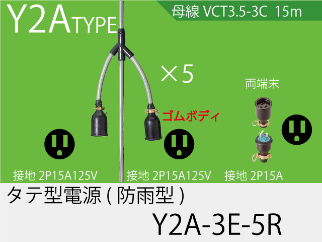 タテ型電源ゴム型防水タイプ Y2A-3E-5R