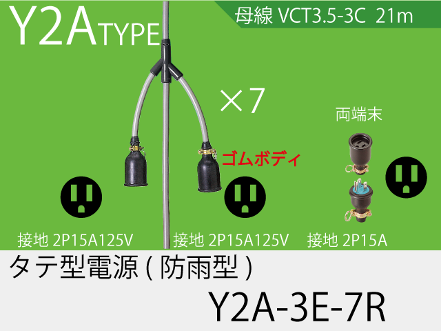 タテ型電源ゴム型防水タイプ Y2A-3E-7R