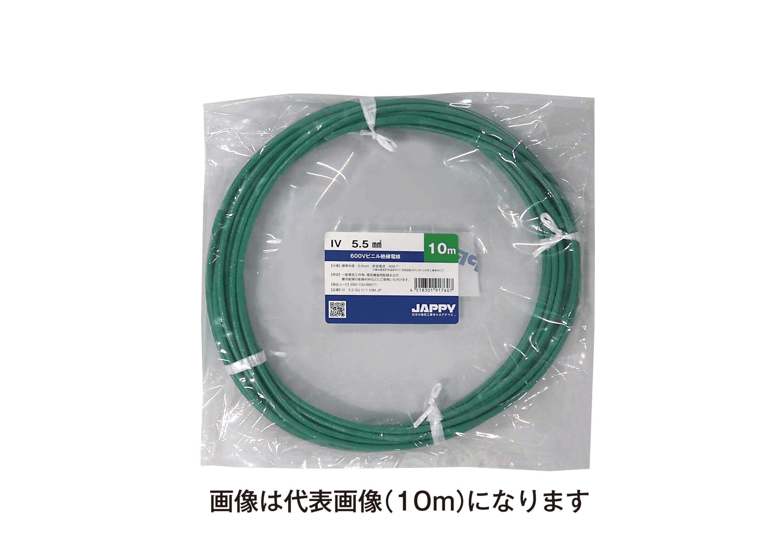 JAPPY ビニル絶縁電線 IV 5.5sq 緑 5m JP