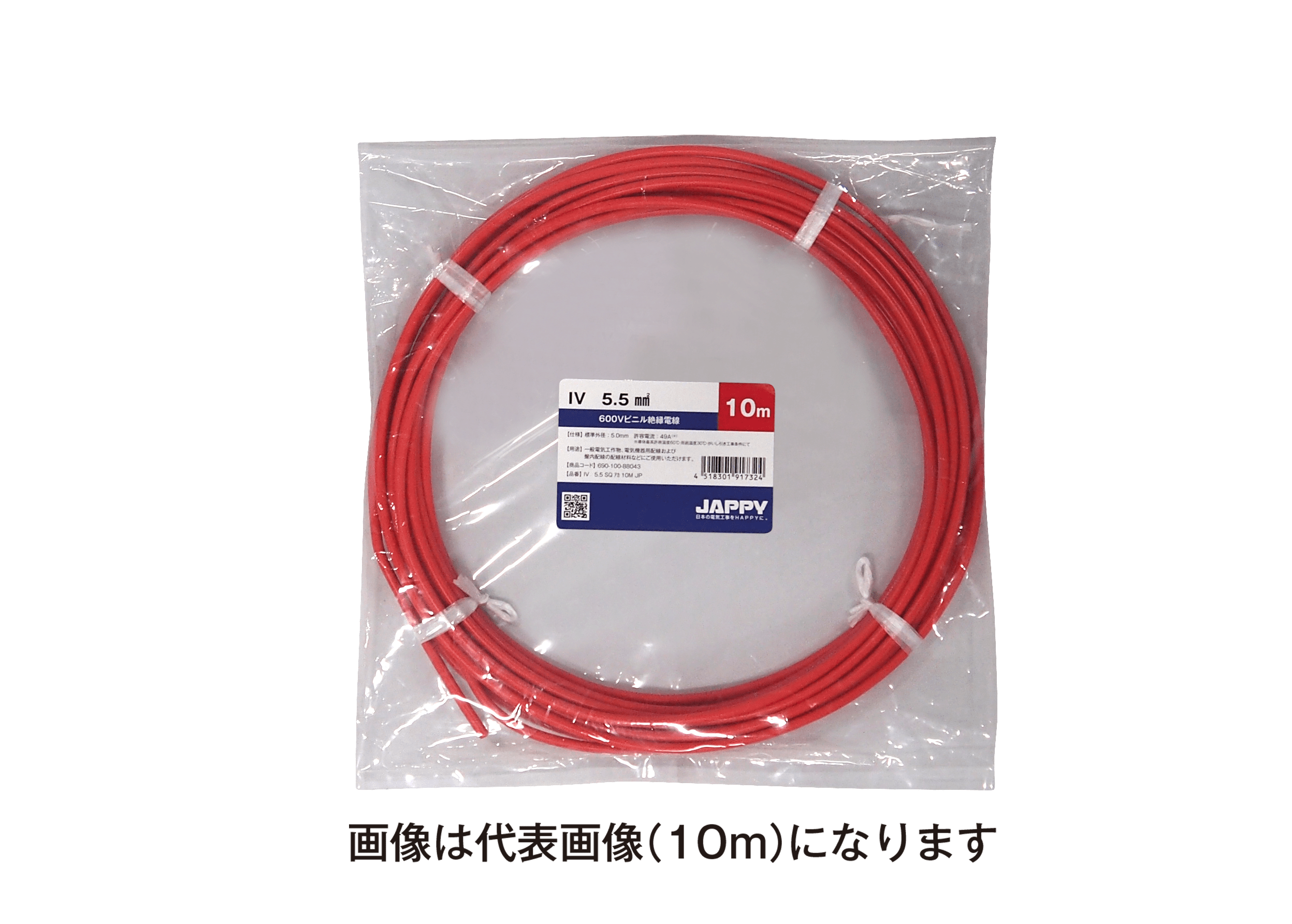 JAPPY ビニル絶縁電線 IV 5.5sq 赤 5m JP