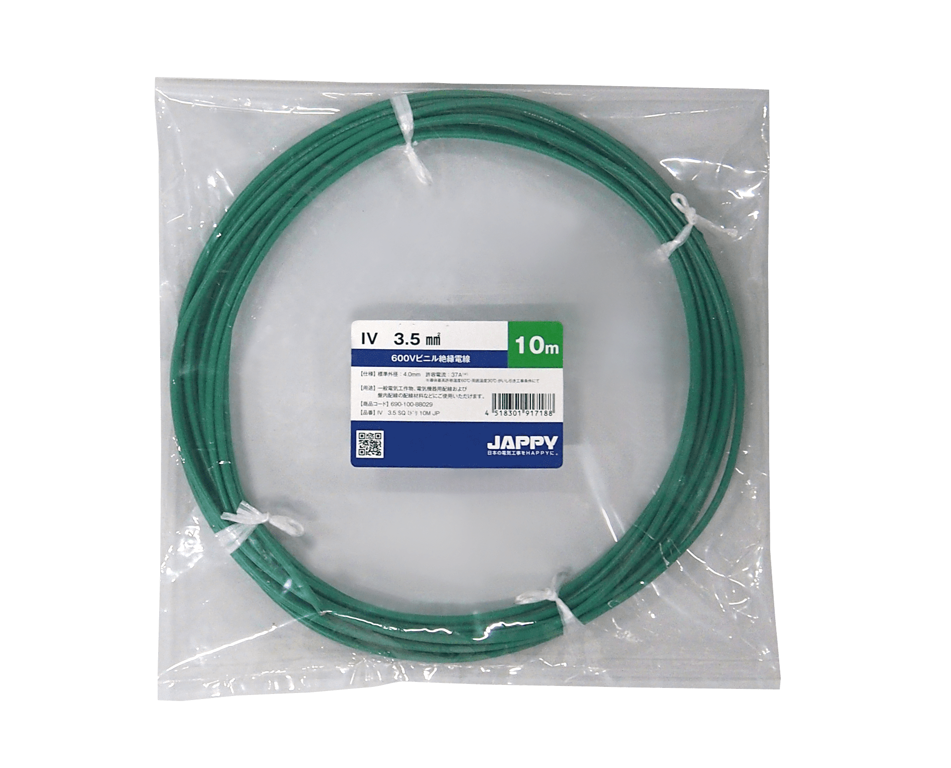 JAPPY ビニル絶縁電線 IV 3.5sq 緑 10m JP