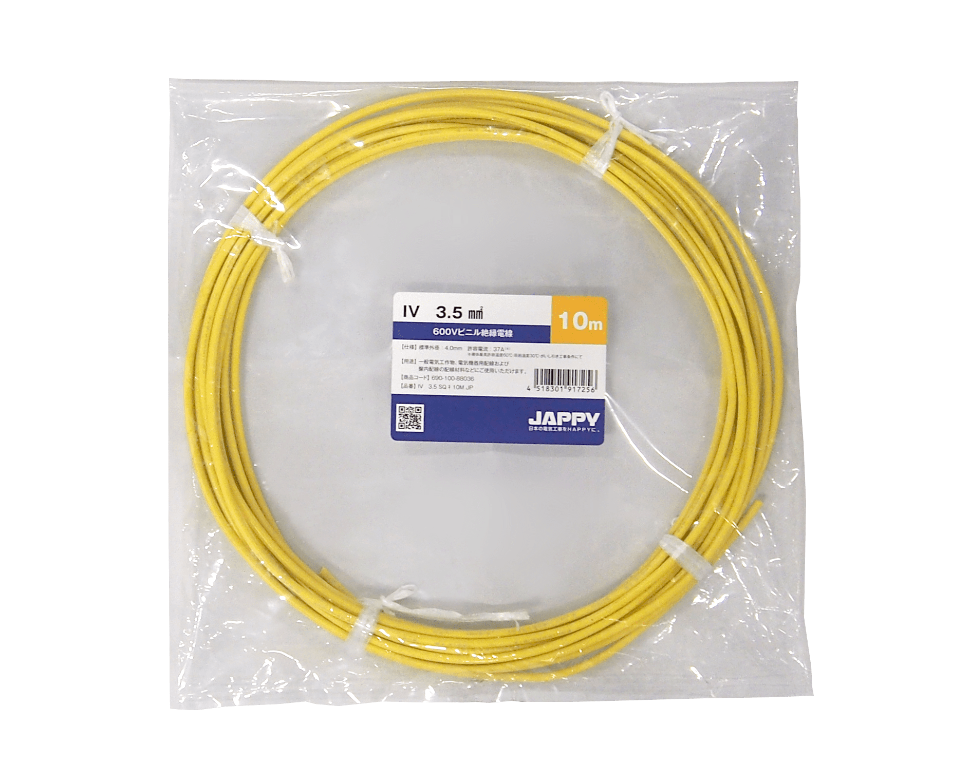 JAPPY ビニル絶縁電線 IV 3.5sq 黄 10m JP